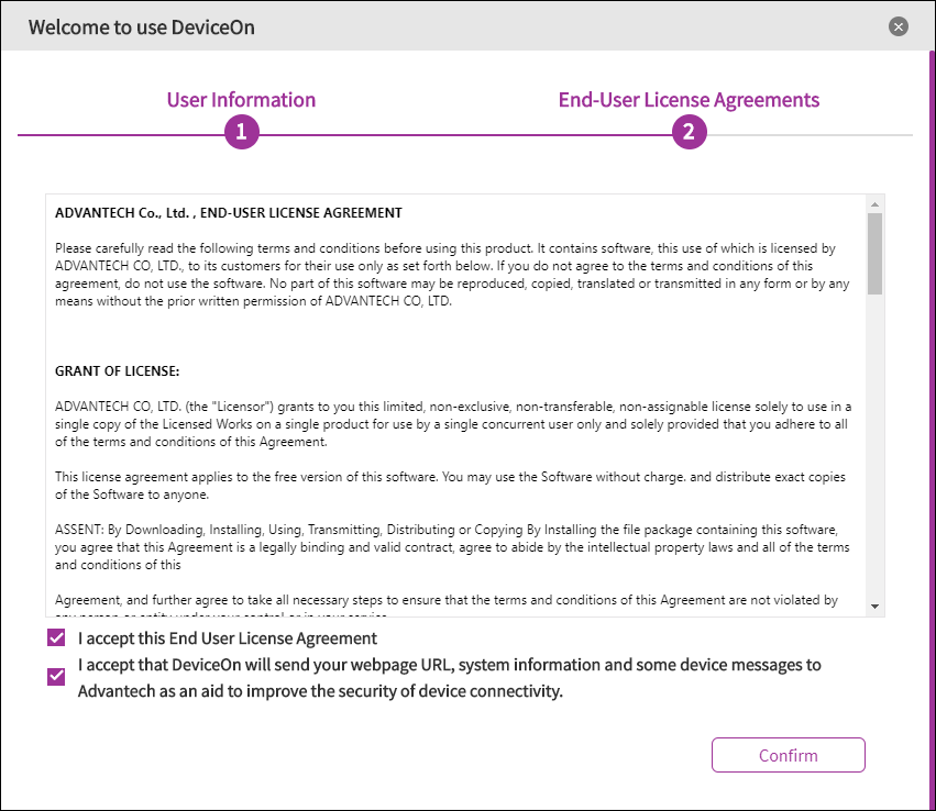 Enter to DeviceOn main page, please follow the steps to finish the basic questionnaire and then confirm the related policy and agreement. (As below pictures)