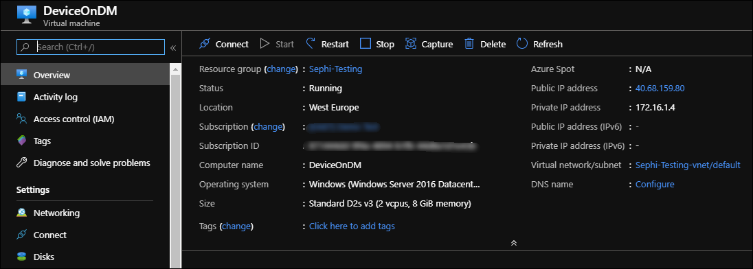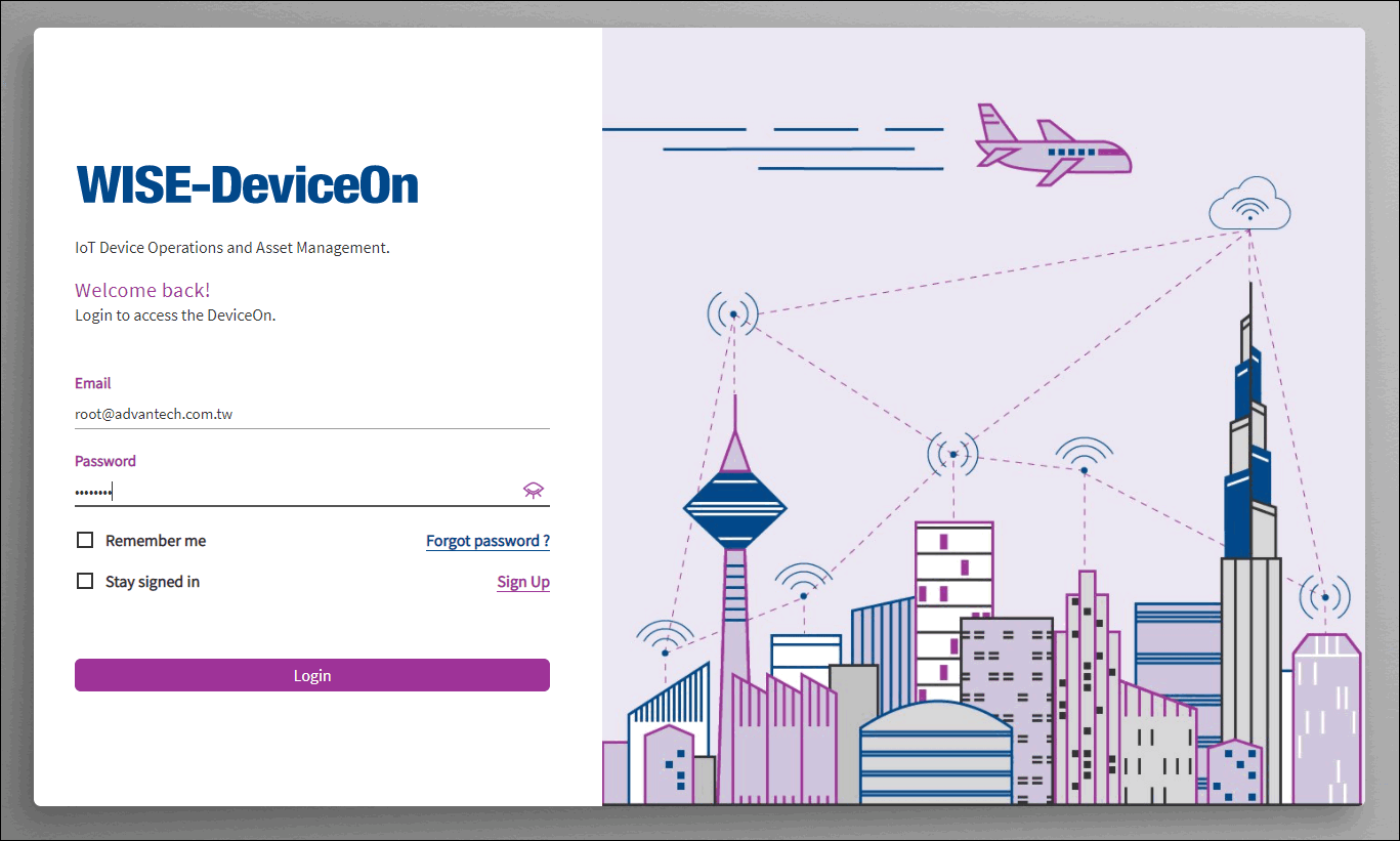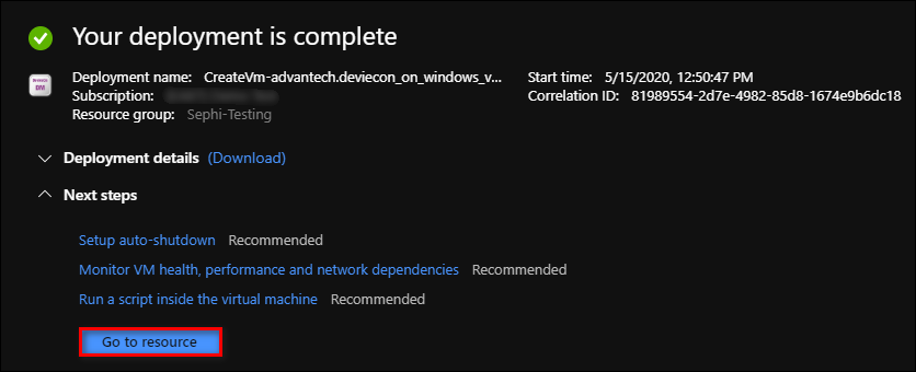 After deployment, please click on “Connect” to remote login to VM via Microsoft Remote Desktop. The password that you configure on Step 1. There is a Quick Start Guide on the desktop and include the random password to access DeviceOn Web Service.