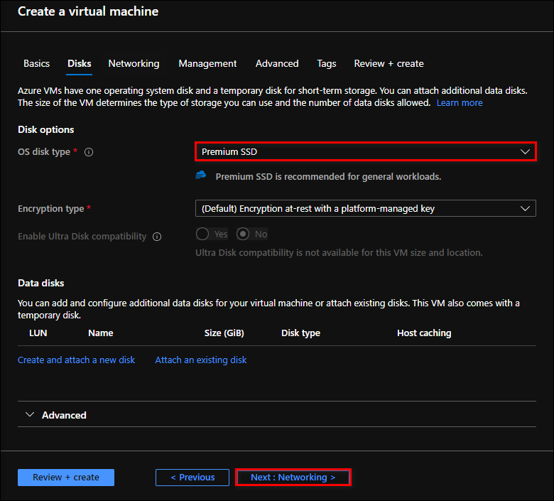 Then click Next to move on, or you can directly click “Review + Create”, then all the following items will be set as default.