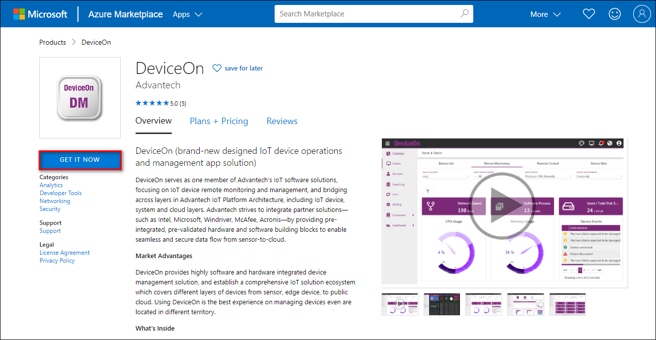 Step 1: Deploy DeviceOn from Azure Marketplace