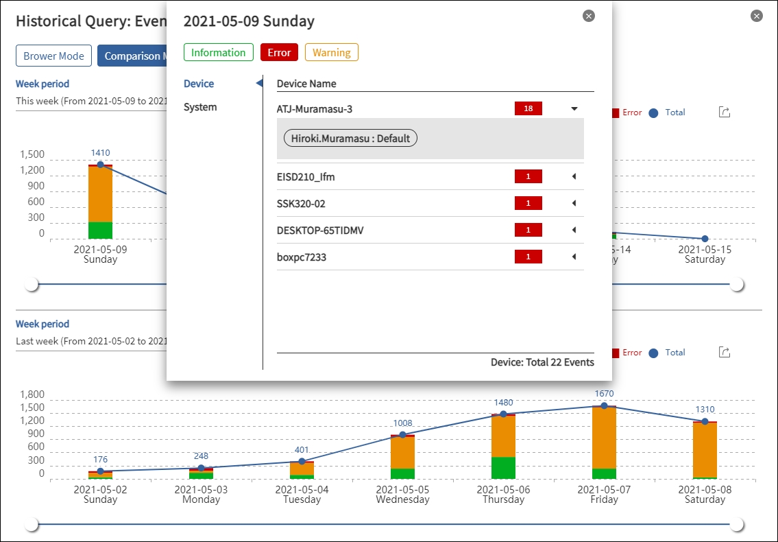 In order to make it easier and faster for the IT or operator to understand the current or historical equipment status, we have improved the Event Log analysis. You can find the problematic equipment or any abnormal events in the system from the dashboard at a glance.