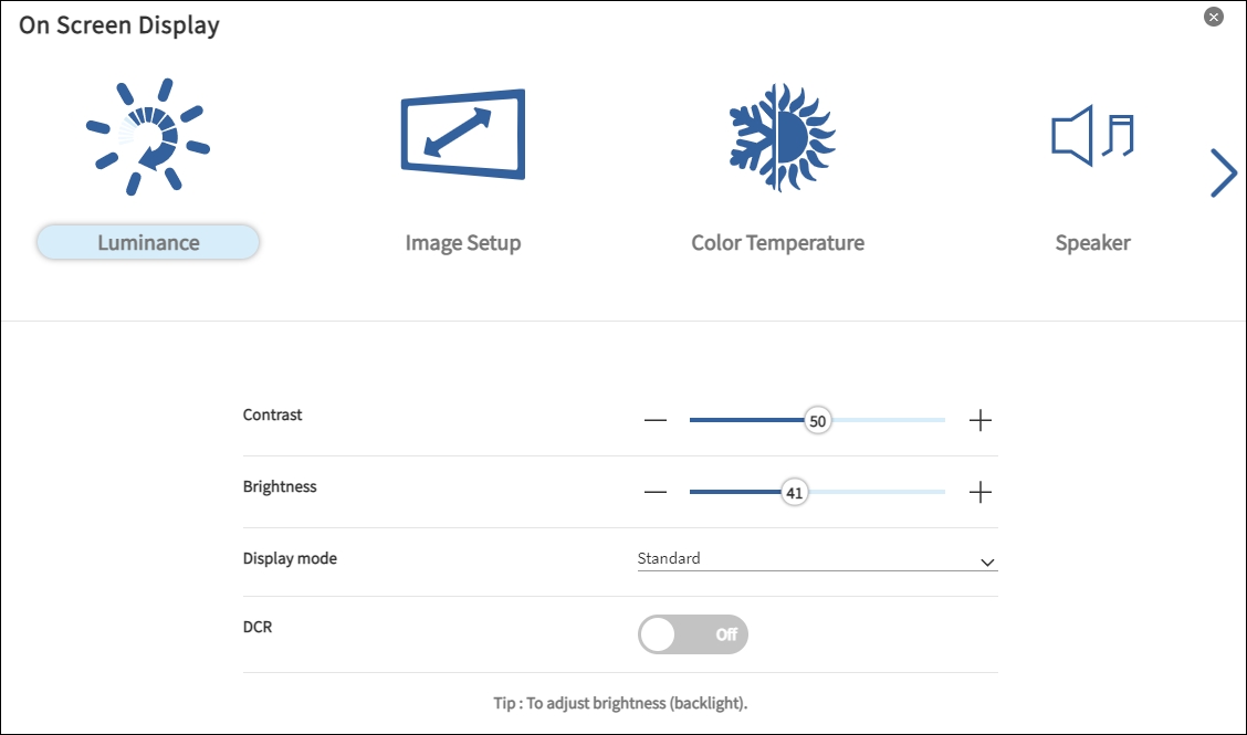 On-Screen Display (OSD) Management (“Luminance”, “Color Temperature”, “Contrast”, “Brightness” and resolution)