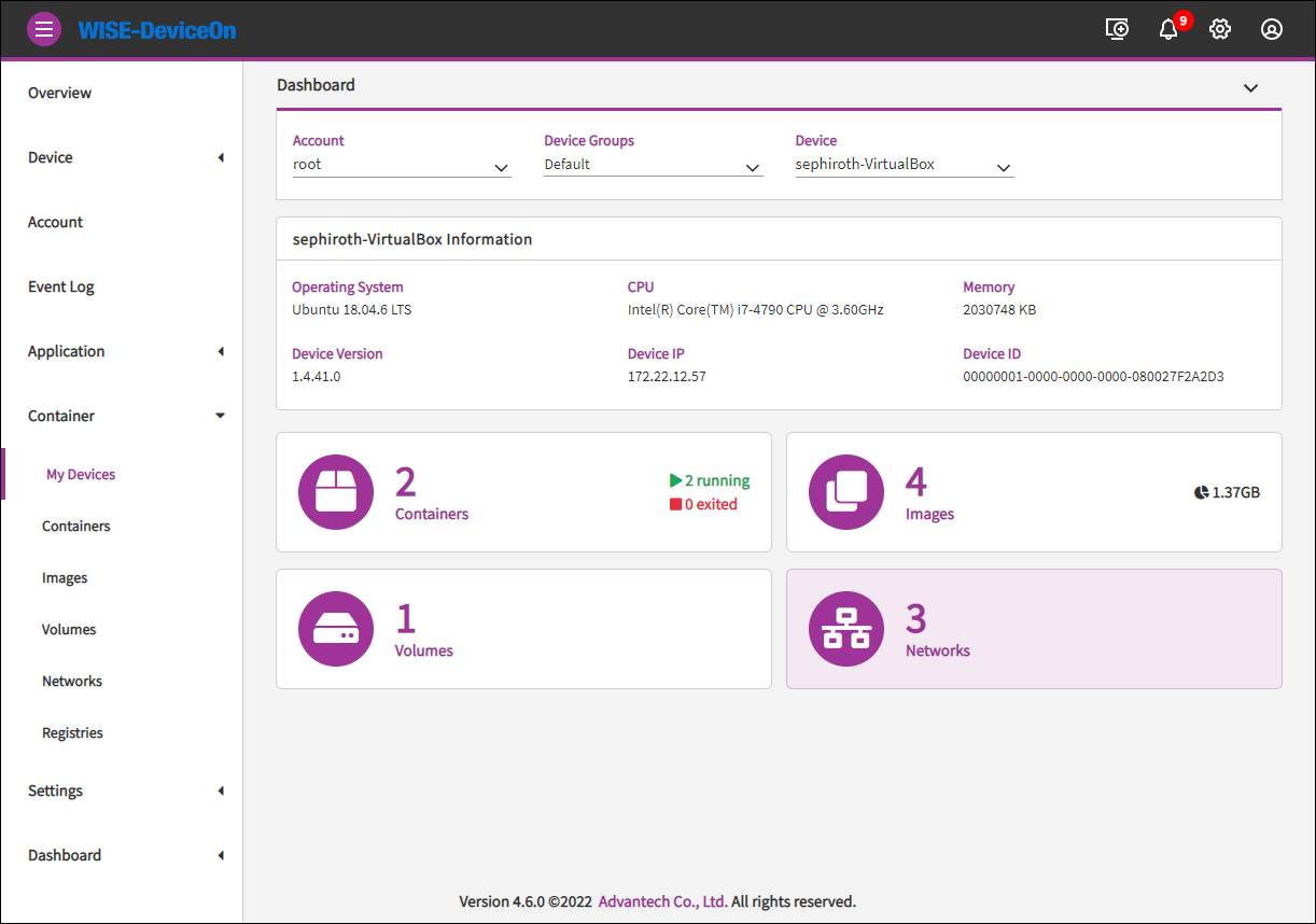 Container Management (Monitoring, Deploy, and Logs) through DeviceOn Platform