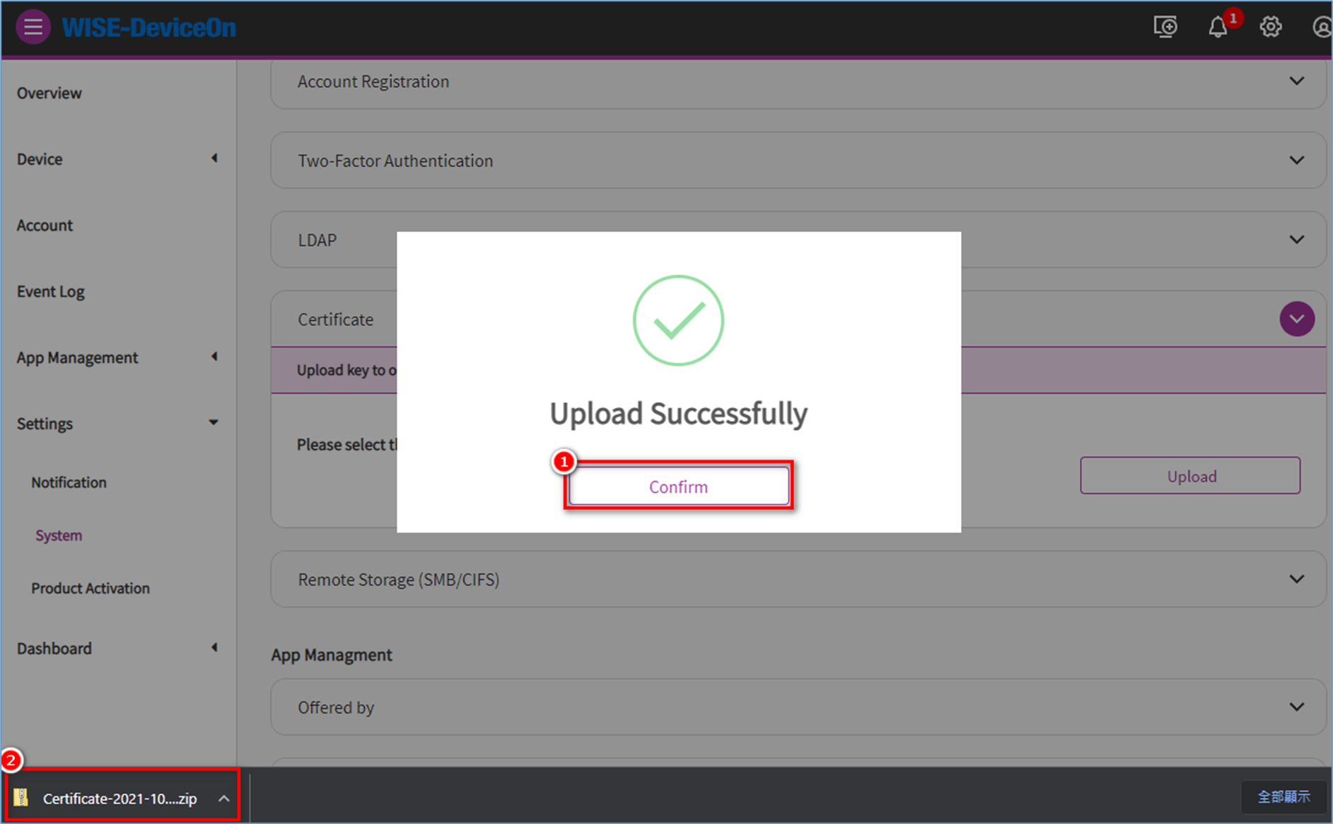 Step 4: If anything well, you should get a zip file named Certificate-xxxx-xx-xx.zip.