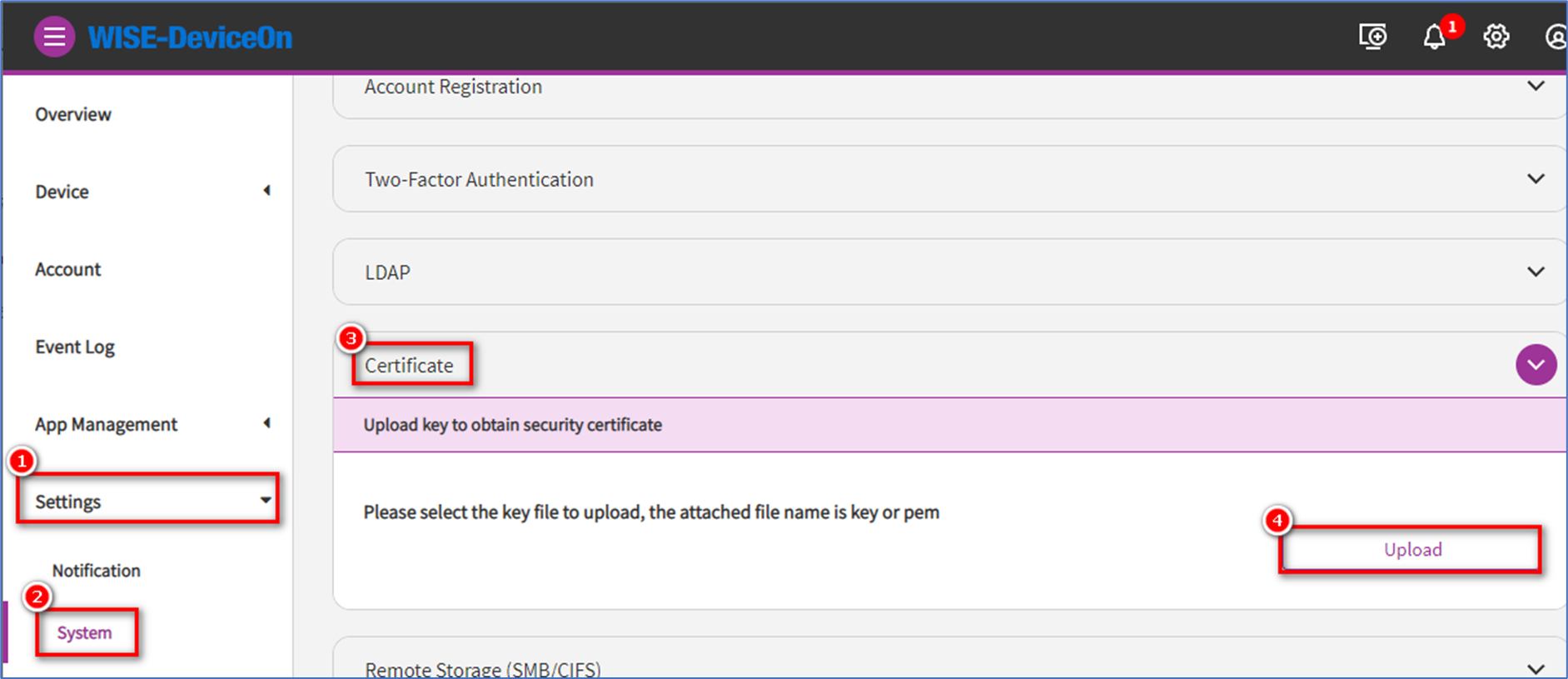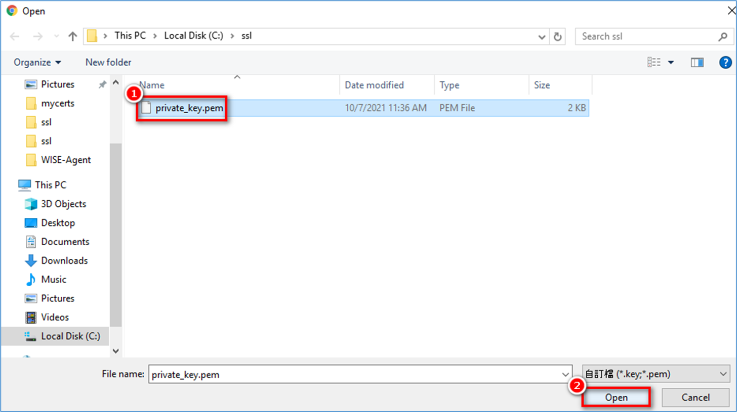 Step 3: On the right panel, extend Certificate, select Upload and browser the private key file that you created before.
