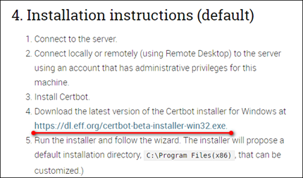 Scrolling down the instruction, you may get the installer package on Step 4. https://dl.eff.org/certbot-beta-installer-win32.exe