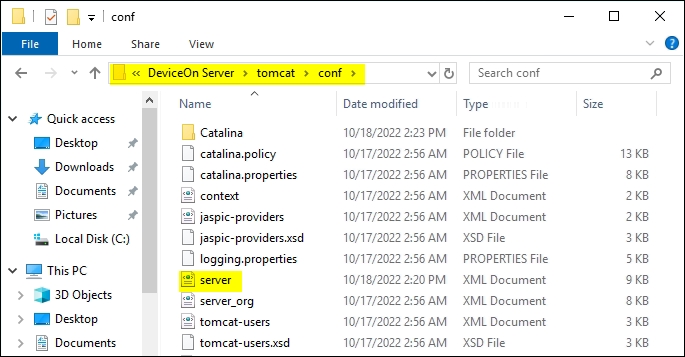 Tomcat Service The DeviceOn web service uses Apache Tomcat to provide the user interface, APIs and WebSockets. For advanced configuration (SSL, connection pool, etc.), you may modify “server.xml” located in the installation folder.