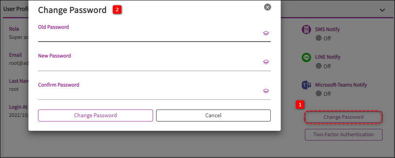 If the user would receive notify from device, system or operation alert, please enable these alert services on βMailβ, βSMSβ, βWeChatβ, βLINEβ, βTelegramβ, βTeamsβ and βSlackβ.