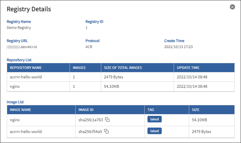 To add a container registry, go to Container > Registries and click the + icon. DeviceOn supports Azure Container Registry (ACR) for public registries and Harbor for private registries.